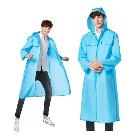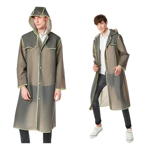 Chubasquero de EVA con logotipo personalizado con estilo, impermeable, chaqueta de lluvia larga con capucha grande para mujeres y hombres